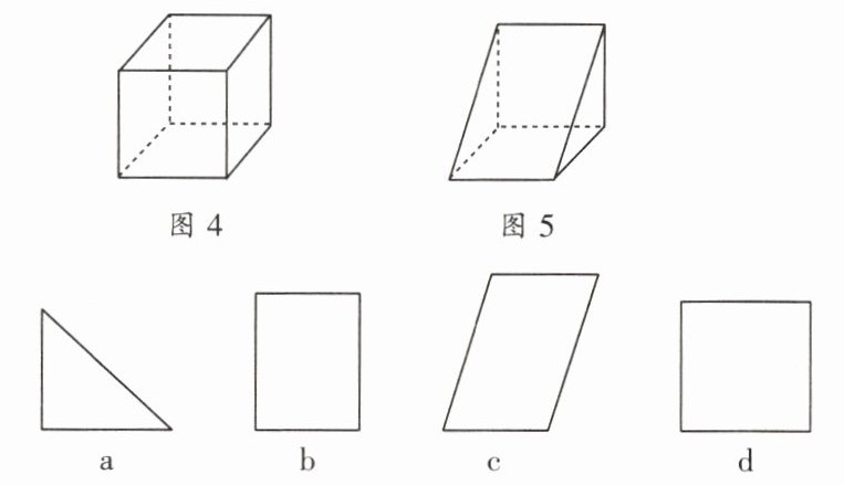 2. 如图 4 是一正方体萝卜块,沿其对角线切去一半,得到图 5,则图 5 的左视图和俯视图