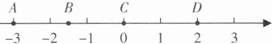 2. 数轴上点$A,B,C,D$表示的数分别是$-3,5,-3.5,\frac{7}{8}$,其中离原点最远的是 (