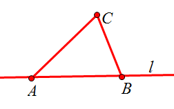 2. 画直线$l$,在直线$l$上任取两点$A$、$B$,$C$是直线$l$外一点,连接$AC$、$BC$.