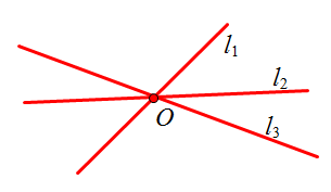 1. 三条直线$l_1$、$l_2$、$l_3$经过同一点$O$.