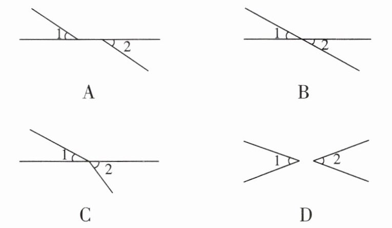 1. 下图中,$\angle1$与$\angle2$属于对顶角的是()