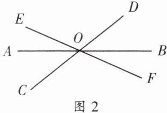 2. 如图2,直线$AB$、$CD$、$EF$相交于点$O$,则$\angle AOD$的对顶角是