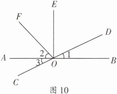 4. 如图 10,直线 $AB$、$CD$ 相交于点 $O$,$OE \perp AB$ 于点 $O$,$OF$ 平分 $\angle AOE$,$\angle1=35°23'$,则 $\angle COF=$