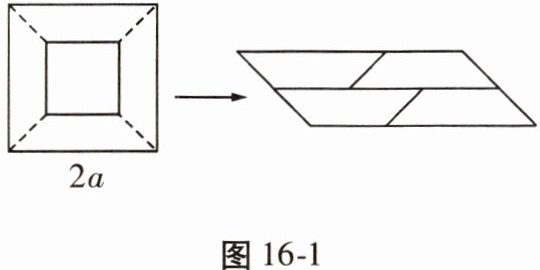 8. 如图16-1,在边长为$2 a的正方形中央剪去一个边长为a+2的小正方形(a>2)$,将剩余部分剪开拼成一个平行四边形,则该平行四边形的面积为(
