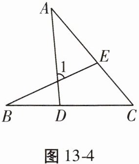 7. (2021 陕西中考)如图13-4,点D,E分别在线段BC,AC上,连接AD,BE。若∠A = 35°,∠B = 25°,∠C = 50°,则∠1的大小为 (