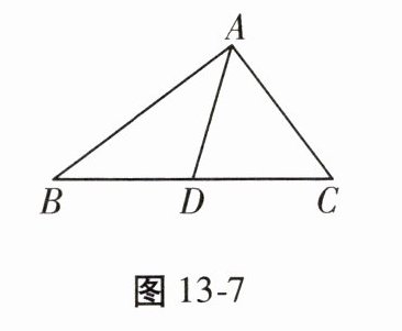 10. 如图13-7,AD是△ABC的中线,AB = 4,AC = 3。若△ACD的周长为8,则△ABD的周长为