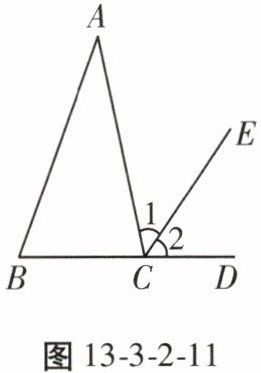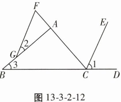 8. 如图 13-3-2-12,CE 平分△ABC 的外角∠ACD,F 为 CA 延长线上一点,FG // CE,交 AB 于点 G,则∠1,∠2 与∠3 的数量关系是
