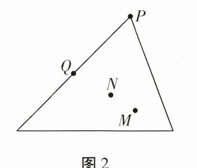 2. 如图2,有一个厚薄均匀的三角形硬纸板,在硬纸板上选一点钻一个小孔,通过小孔系一条线将三角形硬纸板吊起,若三角形硬纸板处于平衡状态,则这一点可能是(
