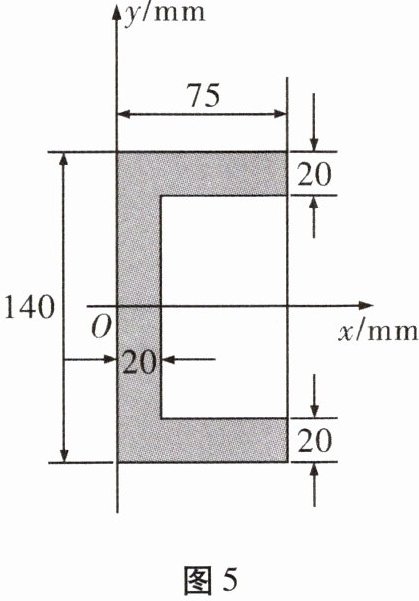 解:将C字形工件视为长140 mm、宽75 mm的大长方形挖去一个长100 mm、宽55 mm的小长方形,