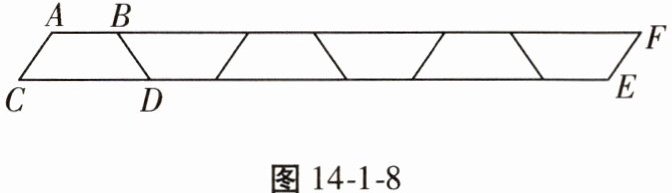 4. 如图 14-1-8 是由 6 个全等的四边形拼成的图形,若 $ AB = 3 cm $,$ CD = 2AB $,则 $ AF $ 的长为