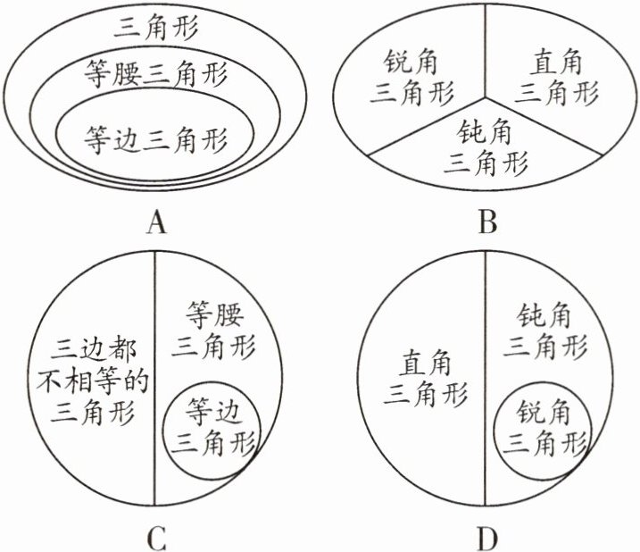 7. 用下面的图表示三角形的分类,其中不正确的是 (