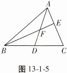 5. (教材 P4 习题 T1 变式)如图 13 - 1 - 5,在 $ \triangle ABC $ 中,$ D $,$ E $ 分别是 $ BC $,$ AC $ 上的点,连接 $ BE $,$ AD $ 交于点 $ F $,问: