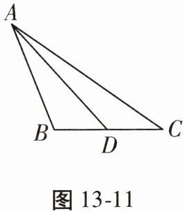 14. (8分)如图13-11,D为△ABC的边BC上一点,试判断2AD与△ABC的周长之间的大小关系,并加以证明。