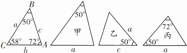 7. 下列各图中a,b,c为三角形的边长,则甲、乙、丙三个三角形和左侧△ABC全等的是(