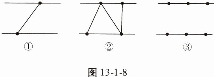 图 13 - 1 - 8②展示了当 $ n = 2 $ 时的一种情况,此时图中三角形的个数为 $ 2 $。