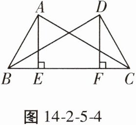 【例2】如图14-2-5-4,已知AE⊥BC,DF⊥BC,垂足分别为E,F,AE= DF,AB= DC。求证:(1)∠ABE= ∠DCF;(2)AC= DB。
