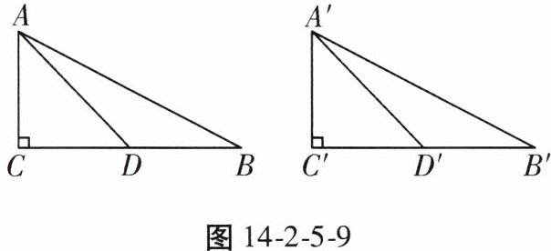5. 如图14-2-5-9,在Rt△ABC和Rt△A'B'C'中,∠C= ∠C'= 90°,AC= A'C',AD与A'D'分别为BC,B'C'边上的中线,且AD= A'D'。求证:Rt△ABC≌Rt△A'B'C'。