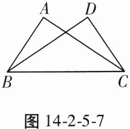 3. (教材P42例6变式)如图14-2-5-7,在Rt△ABC与Rt△DCB中,已知∠A= ∠D= 90°,为了使Rt△ABC≌Rt△DCB,需添加的条件是