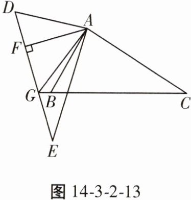 $9. $如图$14-3-2-13,△ABC$与$△AED$中$,∠E = ∠C,DE = BC,EA = CA,$过点$A$作$AF⊥DE,$垂足为$F,DE$交$CB$的延长线于点$G,$连接$AG。$