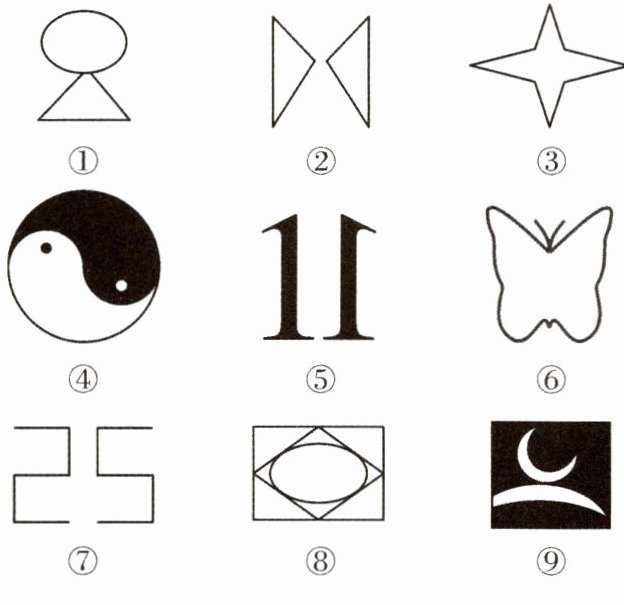 图①③⑥⑧是轴对称图形;图②⑤⑦中的两个图形成轴对称。