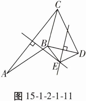 9. 已知:如图 15 - 1 - 2 - 1 - 11,$AB = CD$,线段 AC 的垂直平分线与线段 BD 的垂直平分线相交于点 E。求证:$\angle ABE = \angle CDE$。