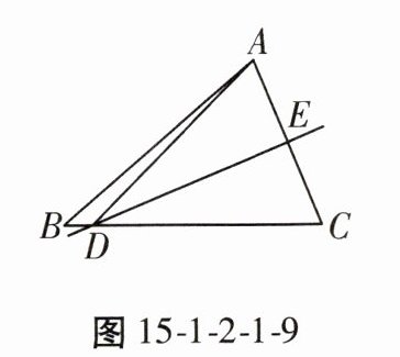 7. 如图 15 - 1 - 2 - 1 - 9,$\triangle ABC$中,DE 是 AC 的垂直平分线,$AE = 2.5\ cm$,$\triangle ABD$的周长为 14 cm,则$\triangle ABC$的周长为