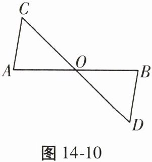 13. (6分)(2025云南中考)如图 14 - 10,$ AB $ 与 $ CD $ 相交于点 $ O $,$ AC = BD,\angle C = \angle D $。