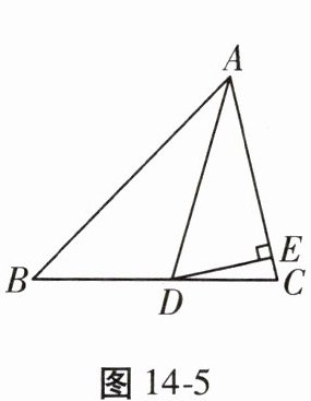 7. (2024绵阳中考)如图 14 - 5,在 $ \triangle ABC $ 中,$ AB = 5 $,$ AD $ 平分 $ \angle BAC $ 交 $ BC $ 于点 $ D $,$ DE \perp AC $,垂足为 $ E $,$ \triangle ABD $ 的面积为 5,则 $ DE $ 的长为 (
