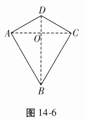 8. 两组邻边分别相等的四边形叫作“筝形”。如图 14 - 6,四边形 $ ABCD $ 是一个筝形,其中 $ AD = CD,AB = CB $,小明在探究筝形的性质时,得到如下结论:①$ AC \perp BD $;②$ AO = CO = \frac{1}{2}AC $;③$ \triangle ABD \cong \triangle CBD $,其中正确的结论有 (