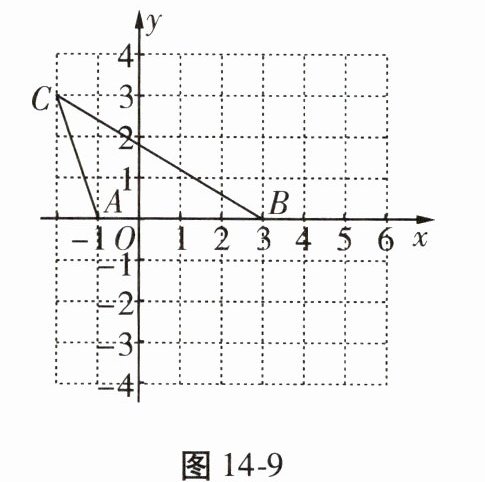 12. $ \triangle ABC $ 在平面直角坐标系中的位置如图 14 - 9 所示,现另有一点 $ D $,满足以 $ A,B,D $ 为顶点的三角形与 $ \triangle ABC $ 全等,则 $ D $ 点坐标为