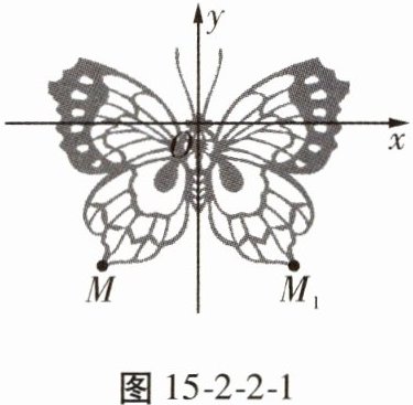 2. (2024绵阳中考)蝴蝶颜色绚丽,翩翩起舞时非常美丽,深受人们喜爱,它的图案具有对称美。如图15-2-2-1,蝴蝶图案关于$y$轴对称,点$M的对称点为M_{1}$,若点$M的坐标为(-2,-3)$,则点$M_{1}$的坐标为(