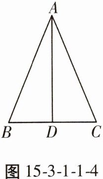 2. 如图 15-3-1-1-4,△ABC 中,AD ⊥ BC,D 为 BC 的中点,以下结论:①△ABD ≌ △ACD;②AB = AC;③∠B = ∠C;④AD 是△ABC 的一条角平分线。其中正确的有(