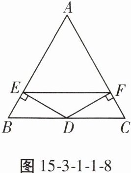6. 如图 15-3-1-1-8,在等腰△ABC 中,AB = AC,D 是 BC 的中点,DE ⊥ AB,DF ⊥ AC,垂足分别是 E,F。求证:∠DEF = ∠DFE。