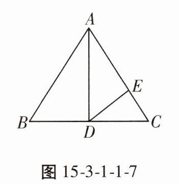 5. 如图 15-3-1-1-7,已知等腰△ABC 中,AB = AC,AD 平分∠BAC,AE = 2EC,若△ABD 的面积是 12,则△CDE 的面积是