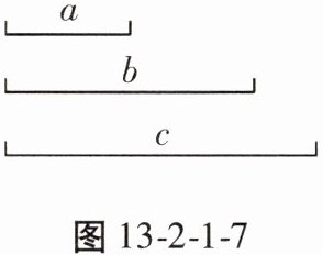 10. (推理能力)如图 13-2-1-7,三条线段的长度分别为 $ a,b,c $,其中 $ a < b < c $,且这三条线段首尾顺次连接能构成三角形。