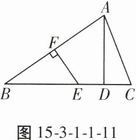 9. 如图 15-3-1-1-11,在△ABC 中,AB 的垂直平分线 EF 交 BC 于点 E,交 AB 于点 F,D 为线段 CE 的中点,BE = AC。
