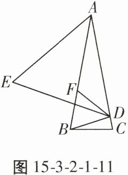 10. 如图15-3-2-1-11,在△ABC中,AB = AC,∠ACB > 60°,在AC边上取点D,连接BD,使BD = BC。以AD为一边作等边△ADE,且使点E与点B位于直线AC的同侧,∠EAB = 2∠BAC。