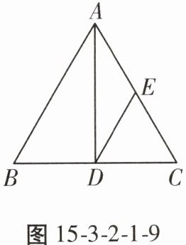 8. 如图15-3-2-1-9,在△ABC中,∠B = 60°,∠EDC = ∠BAC,且D为BC的中点,DE = CE,则AE:AB的值为