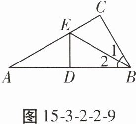 5. 如图15-3-2-2-9,在△ABC中,∠C = 90°,点E是AC上的点,且∠1 = ∠2,DE垂直平分AB,垂足是D,如果EC = 3 cm,求AE的长。