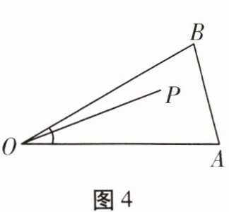 5. 如图 4,某地有块三角形空地 $ AOB $,已知 $ \angle AOB = 30^{\circ} $,$ P $ 是 $ \triangle AOB $ 内一点,连接 $ PO $ 后测得 $ PO = 10 m $,现当地政府欲在三角形空地 $ AOB $ 中修一个三角形花坛 $ PQR $,点 $ Q,R $ 分别是 $ OA,OB $ 边上的任意一点 (不与顶点重合),则 $ \triangle PQR $ 周长的最小值为 (