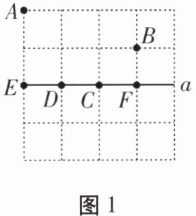 2. 如图 1 的 $ 4 × 4 $ 正方形网格中,有 $ A,B $ 两点,在直线 $ a $ 上求一点 $ P $,使 $ PA + PB $ 最短,则点 $ P $ 应选在 (
