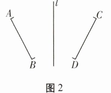 3. 如图 2,线段 $ AB $ 与线段 $ CD $ 关于直线 $ l $ 对称,点 $ P $ 是直线 $ l $ 上一动点,测得点 $ D $ 与点 $ A $ 之间的距离为 $ 8 cm $,点 $ B $ 与点 $ D $ 之间的距离为 $ 5 cm $,那么 $ PA + PB $ 的最小值是