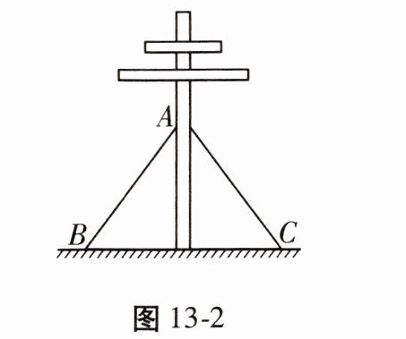 2. 在生活中,我们经常会看见如图13-2所示的情况,在电线杆上拉两条钢绳来加固电线杆,这是利用了三角形的 (