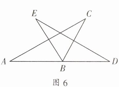 1. 如图6,已知$AB = EB$,$BD = BC$,根据“边角边”判定$\triangle ABC\cong\triangle EBD$,则需要增加条件: