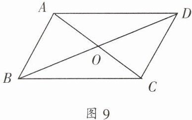 2. 如图9,已知$AC和BD相交于点O$,且$BO = DO$,$AO = CO$,下列判断正确的是(