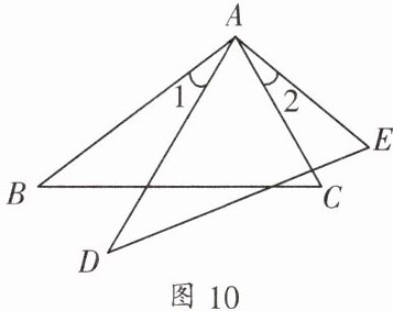 1. 如图10,$AB = AD$,$AC = AE$,$\angle 1 = \angle 2$. 求证:$\triangle ABC\cong\triangle ADE$.