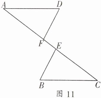 2. 如图11,$AE = CF$,$AD// CB$,$AD = CB$. 求证:$\triangle ADF\cong\triangle CBE$.