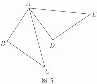 三、如图 5,$\triangle ADE是由\triangle ABC绕顶点A按逆时针方向旋转60^{\circ}$得到的,这两个三角形全等吗?如果全等,写出对应边和对应角.
