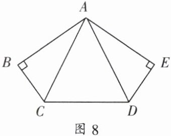 3. 如图 8,在五边形 $ABCDE$ 中,$\angle B= \angle E = 90^{\circ}$,$BC = ED$,$\angle ACD= \angle ADC$。求证:$AB = AE$。