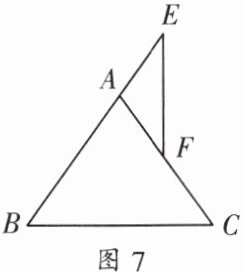 2. 如图 7,在 $\triangle ABC$ 中,$AB = AC$,$F$ 是 $AC$ 上任意一点,在 $BA$ 的延长线上取 $AE = AF$。求证:$EF\perp BC$。